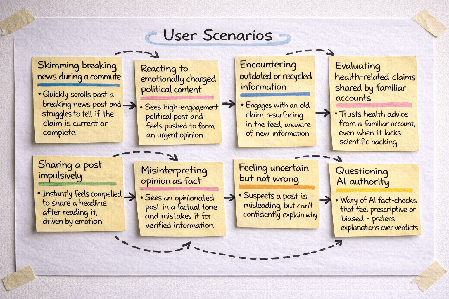 The user testing phase was designed to evaluate whether the interventions meaningfully changed how people interpreted and acted on information, not whether they simply noticed new features.