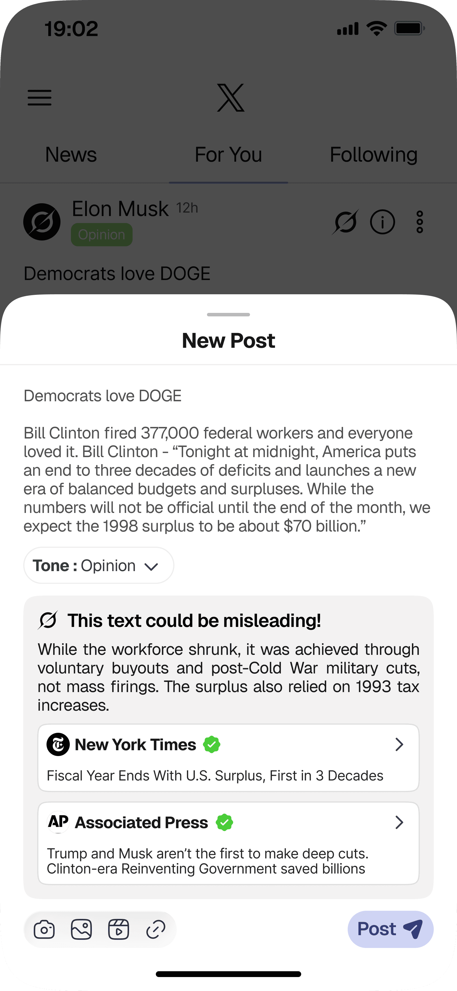Encourages users to reconsider the accuracy and impact of a post